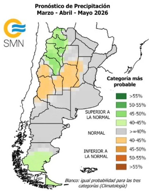 En este contexto, el pronóstico trimestral para el otoño no es alentador: se esperan precipitaciones por debajo de lo normal y temperaturas superiores a lo habitual. En esta época, la recarga de los perfiles hídricos resulta clave, en paralelo a la liberación de los lotes y al inicio, desde mayo, de la siembra de los cultivos invernales.