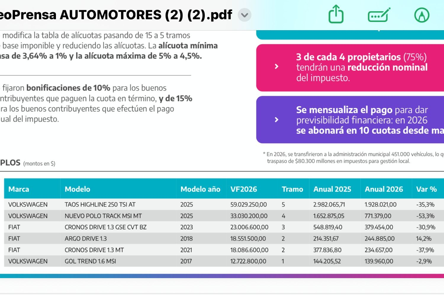De acuerdo con lo informado por el organismo recaudador, el reordenamiento de la tabla busca que los propietarios con mayor capacidad económica tributen en proporción a su patrimonio, mientras que la mayoría de las y los titulares de vehículos experimentará un alivio fiscal.
