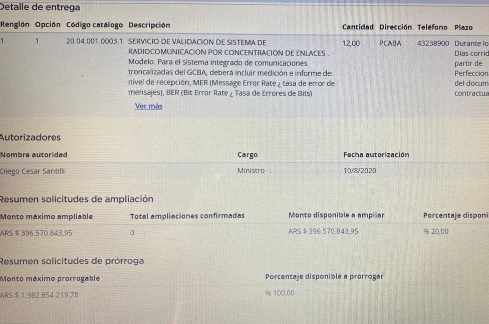 El máximo permitido para una adjudicación directa es $ 13 millones. Para las radiocomunicaciones de Policía de la Ciudad, el vicejefe de Gobierno autorizó una contratación directa de u$s 32 millones. Hubo un pedido de información pública, que en la administración porteña consideraron "fuego amigo".