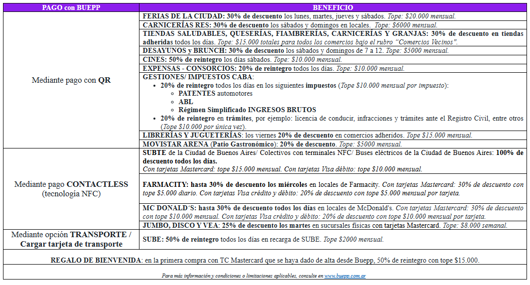Junto a la semana de descuentos con NFC / Contactless, BUEPP además presenta en octubre una serie de beneficios únicos que permiten a cada usuario ahorrar más de $200.000 mensuales. Este ahorro se multiplica en los hogares donde cada integrante mayor de 13 años utiliza la aplicación. Buepp puede descargarse gratuitamente de las tiendas Play Store de Google y App Store de Apple o desde el QR en la web de Buepp ( https://www.buepp.com.ar/ ).