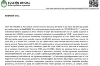 Invernea se fundó en junio de 2020 como sociedad de responsabilidad limitada. En su constitución, aparecen como socios Juan Alberto Pazo (había sido superintendente de Seguros en la presidencia de Macri, actual titular de ARCA) y Martín Voss, con el 90% y 10% de las acciones respectivamente; declarando como actividad principal a la administración de explotación agrícola-ganadera.